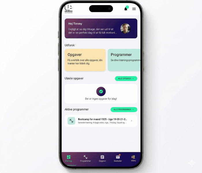 Ja! Dine klienter får adgang til en professionel app i dit eget brand, hvor de kan se træningsprogrammer, kostplaner, beskeder, fremskridt og meget mere. Appen er tilgængelig til både iOS og Android.